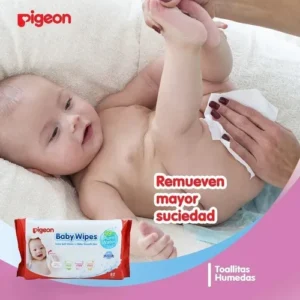 Las toallitas húmedas Pigeon 99% Agua Pura son adecuadas para limpieza de las manos y cara del bebé y el cuidado de la piel sensible del adulto.
